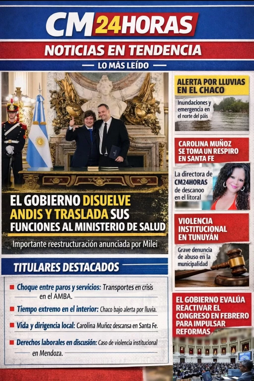 La noticia más leída del día tiene como protagonista al presidente Javier Milei, quien anunció la disolución de la Agencia Nacional de Discapacidad (ANDIS) y el traspaso de sus funciones al Ministerio de Salud. La medida forma parte de una reestructuración profunda del aparato estatal y generó un fuerte impacto político y social.