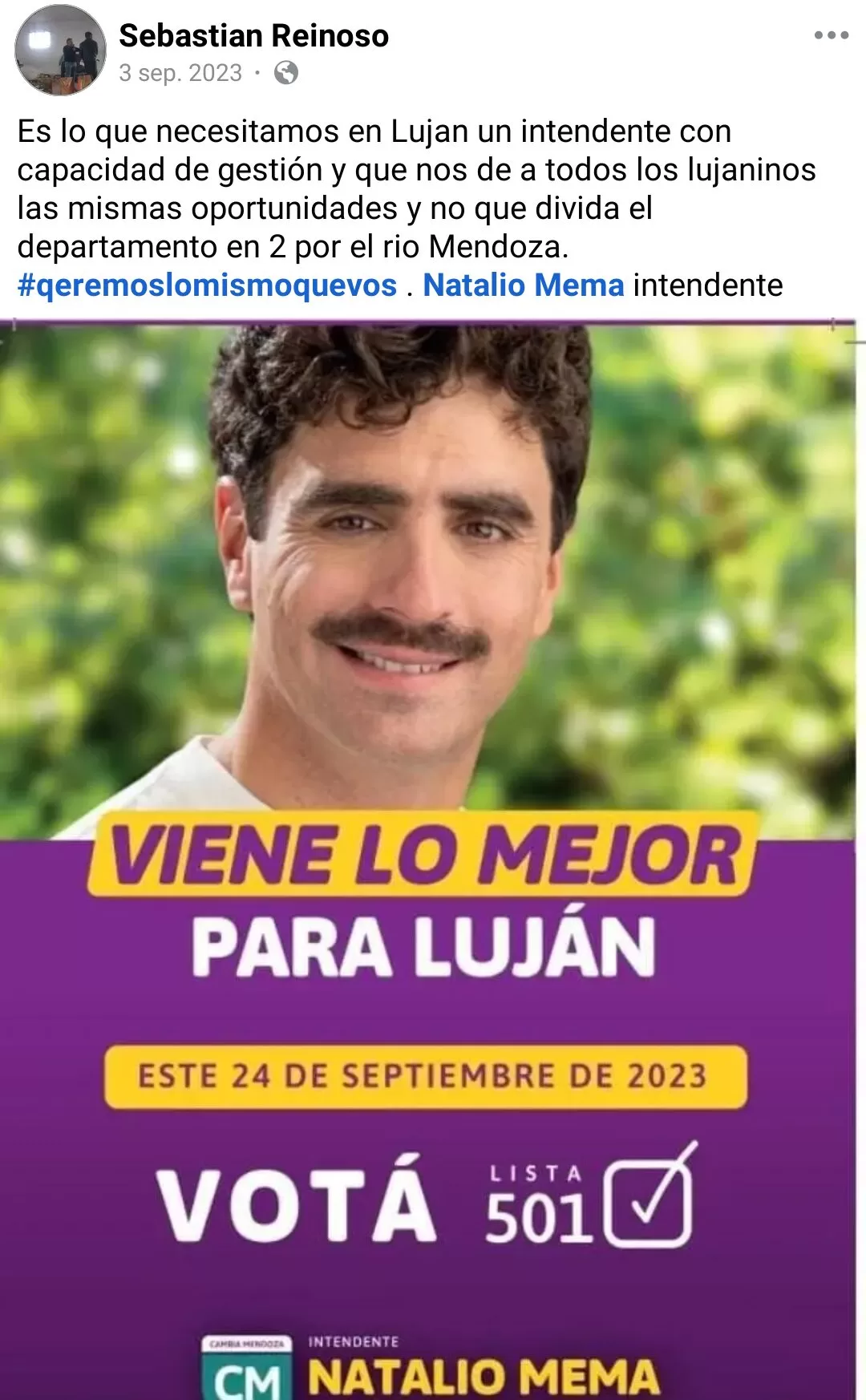 Pero no terminó ahí: se recicló rápidamente en el sector de Natalio Mema, dentro de Cambia Mendoza, donde consiguió lo que parece ser su verdadera especialidad: un cargo para su esposa como celadora, a cambio de su obediencia política. Reinoso no tiene ideología, tiene precio. Y ya lo ha cobrado.