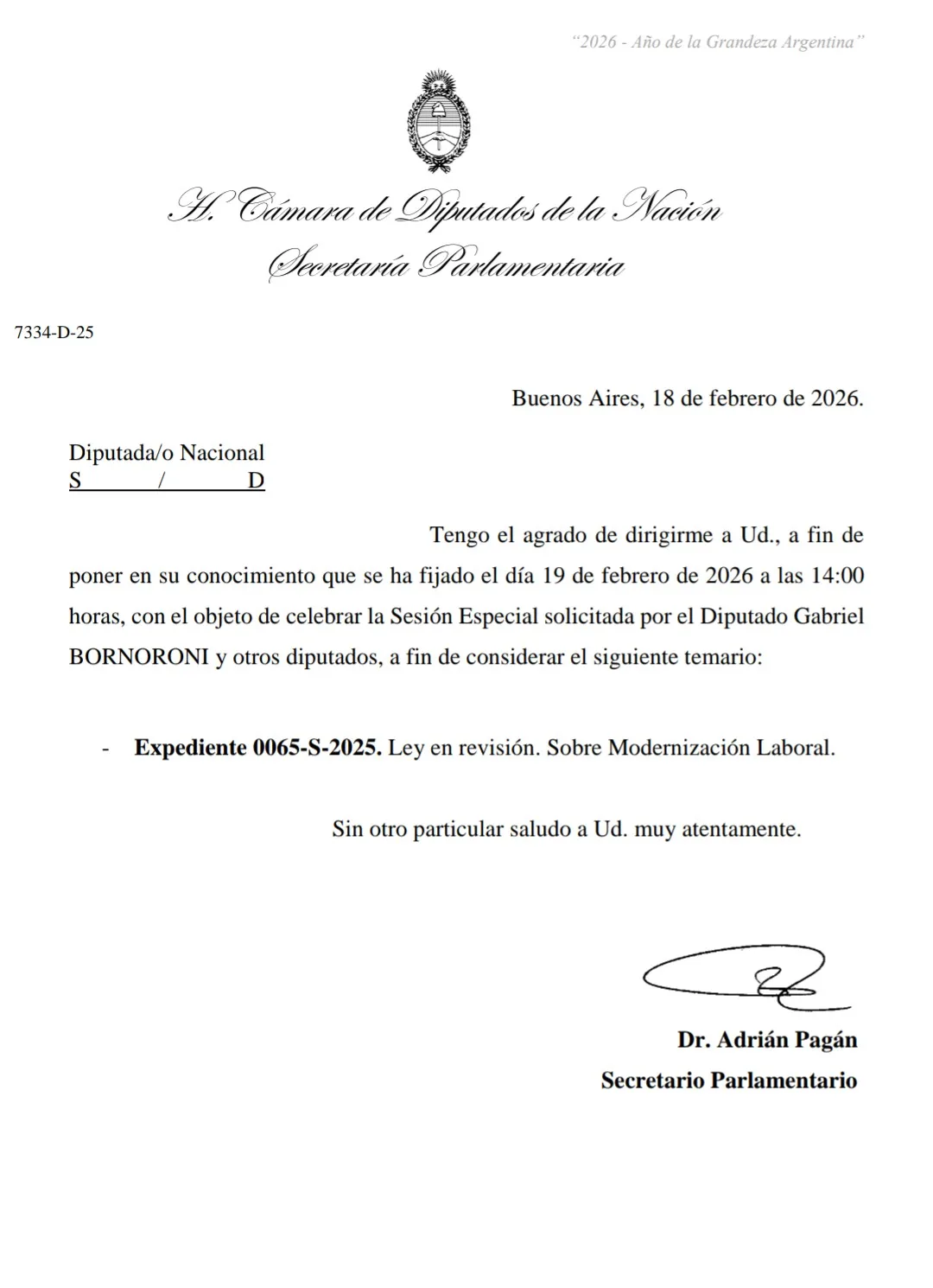 La Cámara de Diputados de la Nación, convocó a sesión para este jueves 19 de febrero a las 14h con el objetivo de tratar la reforma laboral impulsada por el oficialismo. El llamado se concretó tras el pedido formal de legisladores de bloques aliados y luego de introducir cambios clave en el texto aprobado por el Senado.
