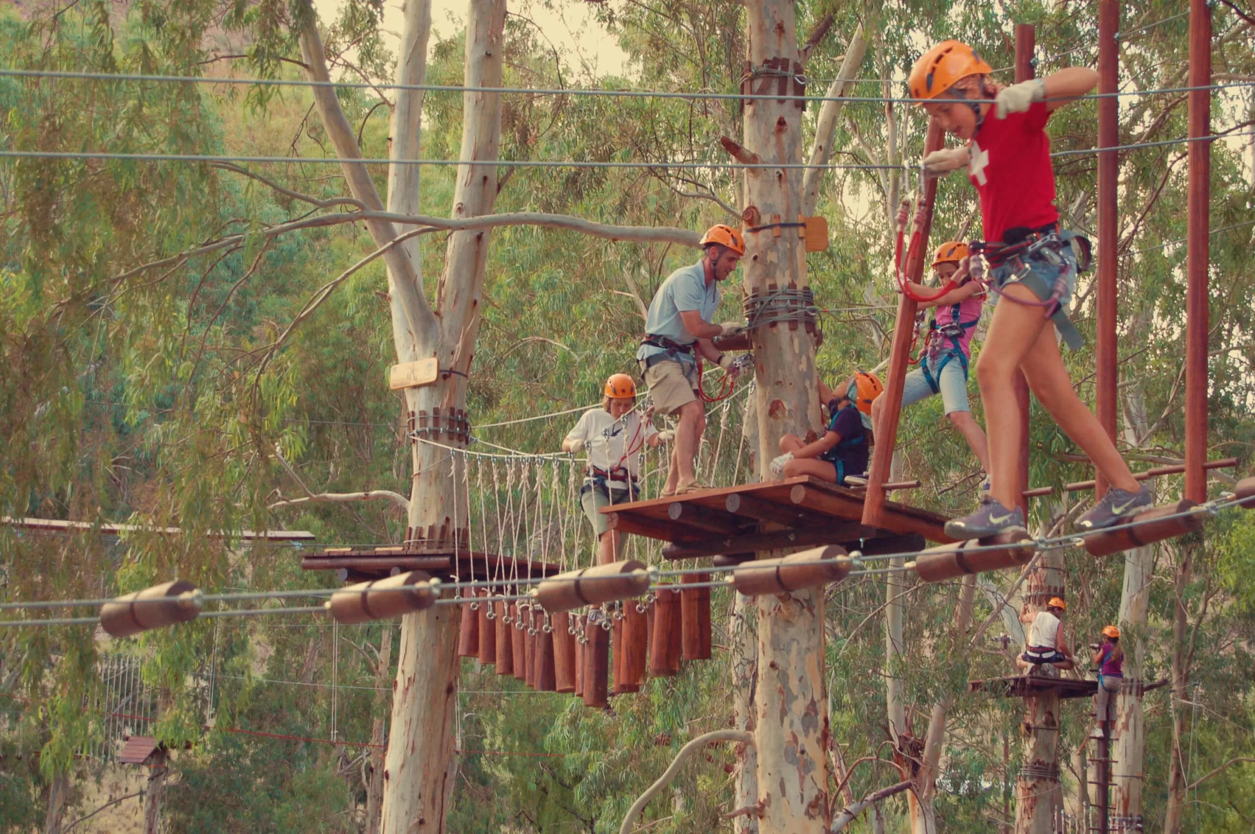 - Tirolesa, canopy y puentes colgantes en entornos de altura.