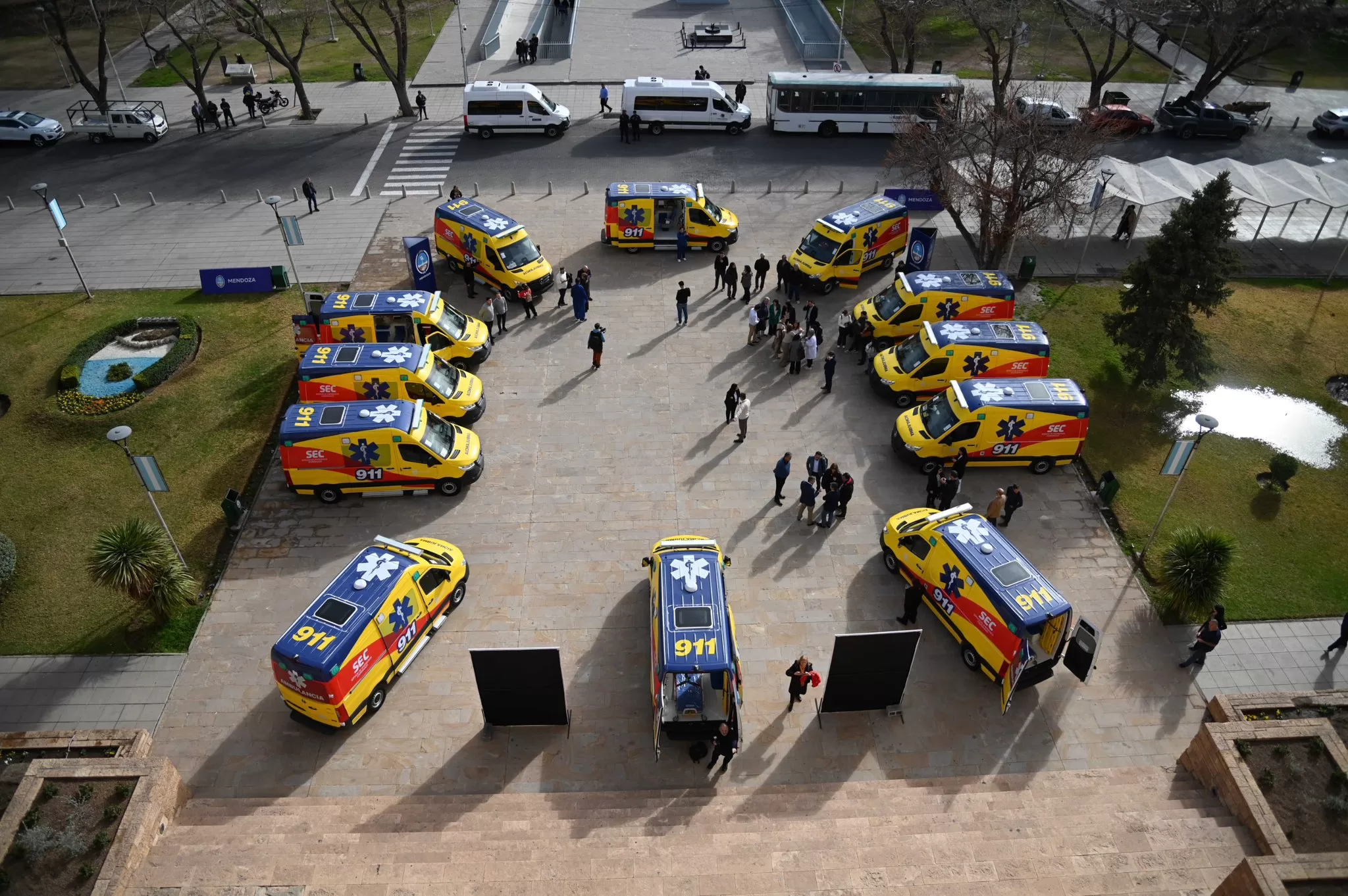 El gobernador Alfredo Cornejo presentó este martes 12 nuevas ambulancias de alta complejidad totalmente equipadas y anunció la reestructuración del Servicio Coordinado de Emergencias (SEC), en el marco del Plan de Salud 2024-2030.