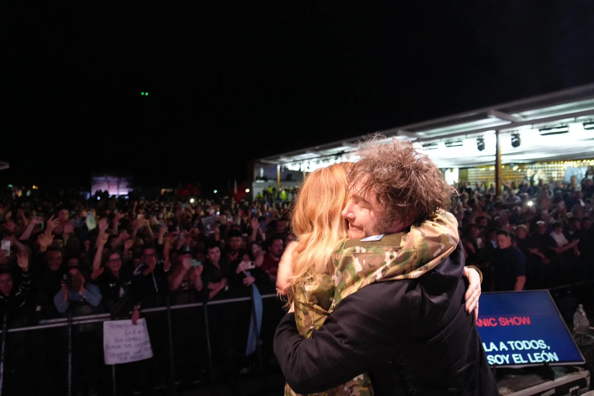 La jornada presidencial tuvo un costado más distendido antes del acto político. Durante la tarde, Milei se presentó en el Teatro Roxy, donde acompañó a Fátima Florez en su espectáculo “Fátima Universal”. Allí, el Presidente se animó a cantar “El rock del gato”, de Ratones Paranoicos, en una escena que mezcló espectáculo y política.