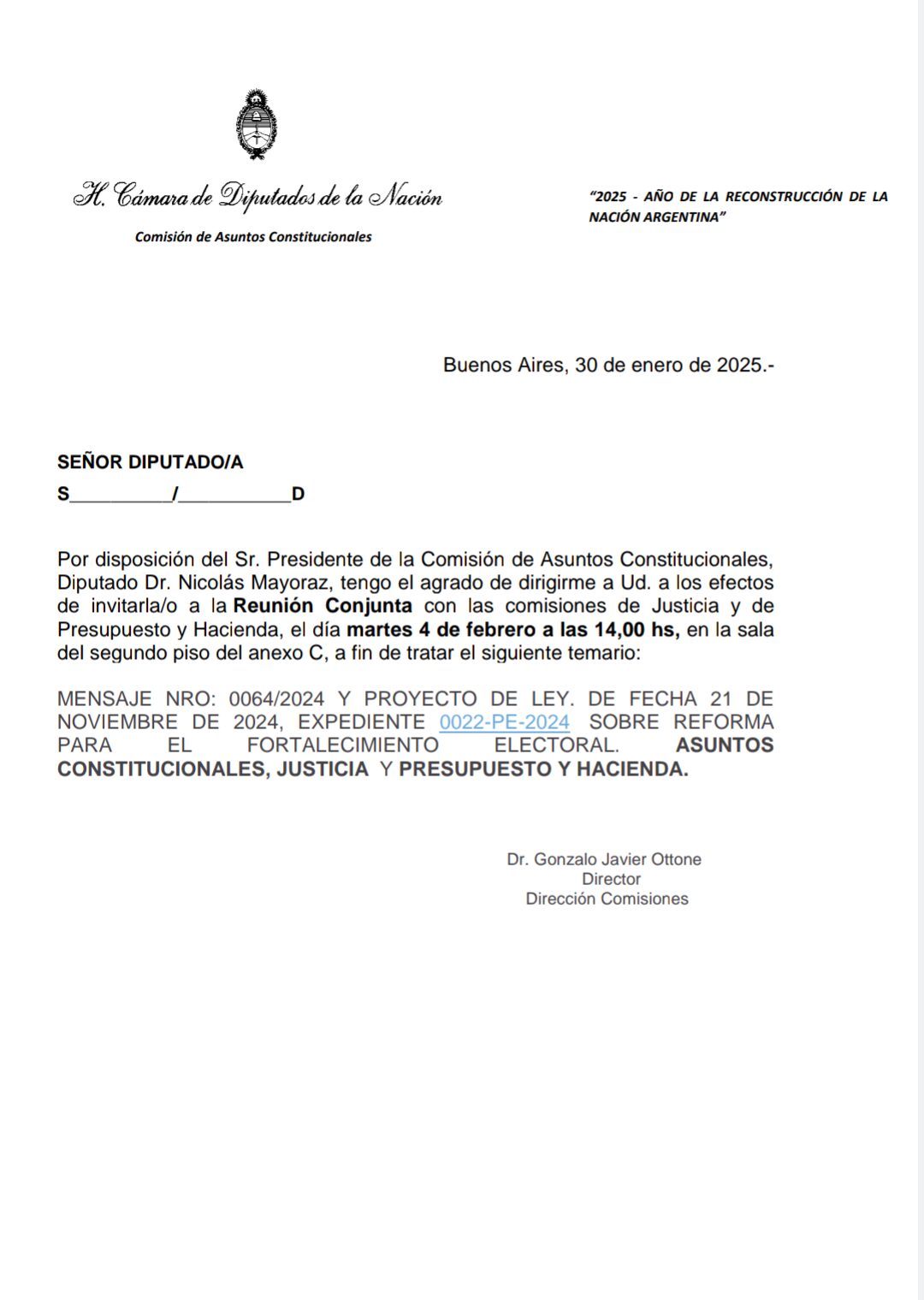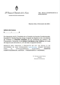 Diputados convocó para el martes a las 14 a un plenario de comisiones para debatir el proyecto de suspensión de las Primarias Abiertas, Simultáneas y Obligatorias (PASO), con el objetivo de sancionar la ley el 6 de febrero.