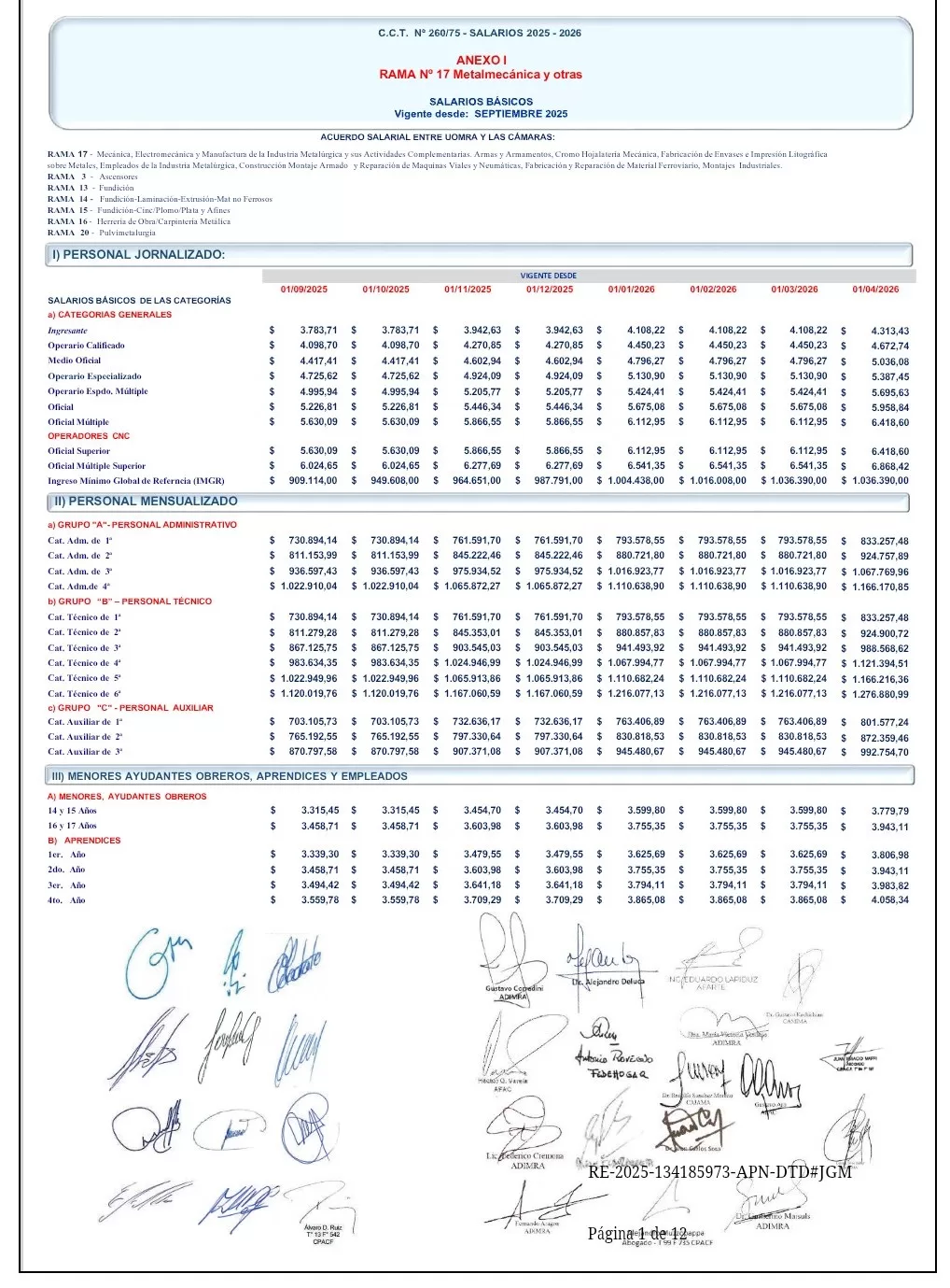 Uno de los puntos centrales del acuerdo es la actualización del Ingreso Mínimo Global de Referencia, que desde enero quedó fijado en $1.004.438 mensuales. Este valor funciona como piso salarial para todo el sector metalmecánico, incluye conceptos remunerativos y no remunerativos y no contempla horas extras ni tiene impacto en indemnizaciones.