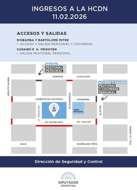 Desde primeras horas del día se implementará el denominado “Protocolo Antipiquetes”, pese a cuestionamientos judiciales. Habrá vallado perimetral en Avenida Rivadavia, Hipólito Yrigoyen, Entre Ríos–Callao y Riobamba, lo que podría generar complicaciones en el tránsito.